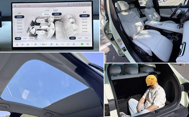 而在座椅部分,該車也是同級唯一提供前排SPA舒享座椅的產品,并且支持加熱,以及吸風式座椅通風,與8點式前排座椅按摩功能,最亮眼的是按摩力度非常頂,能給予乘員非常強烈的按摩體驗,能快速緩解身體疲勞。副駕駛座椅還提供電動調節腿托,長時間乘坐對于緩解腿部疲勞效果顯著。當然,新車也給到1.8平米的全景天幕,但是同樣給到了電動物理遮陽簾,能有效避免陽光暴曬車內悶熱的情況。后備廂容積以及拓展表現此前也給到肯定,常規540L容積,以及放倒后排座椅后1380L的容積完全是越級的表現。后備廂地板下90L的隱藏空間文字上無法體驗,于是我們用“人”進行演示,配合后備廂地板兩層高度設計,能夠帶來更加多變和實用的儲物表現。