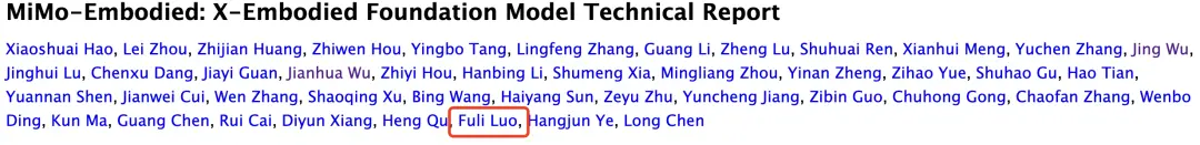 在這篇出自MiMo團隊(主打空間智能)的研究中,羅福莉作為團隊負責人擔任核心作者,小米智駕團隊首席科學家陳龍則作為項目負責人。