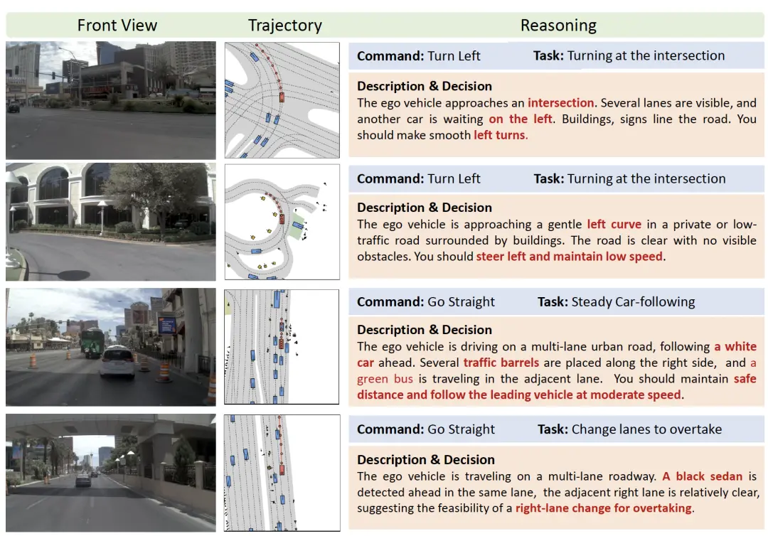 在每種情況下,模型都應感知道路上下文,整合自車狀態和導航意圖,并做出連貫的決策。