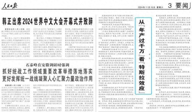 近日,《人民日報》在第三版顯著位置刊發(fā)了一篇聚焦特斯拉的評論員文章,標(biāo)題直指“特斯拉效應(yīng)”,這不僅是對特斯拉在中國市場發(fā)展的高度認(rèn)可,更是對其在全球新能源汽車領(lǐng)域引領(lǐng)地位的肯定。