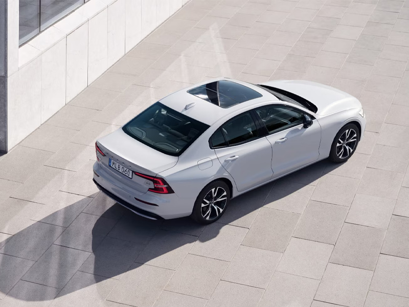 在車身側面,S60展現了其硬朗的線條和低矮流暢的車身設計,展現出一種既運動又簡潔的風格。細節上,五輻式輪圈和熏黑后視鏡為車輛增添了一抹亮色。車尾部分,沃爾沃標志性的C型尾燈和略微上翹的尾部設計營造出小鴨尾的效果,與隱藏式排氣管相得益彰,使得尾部線條流暢而和諧。