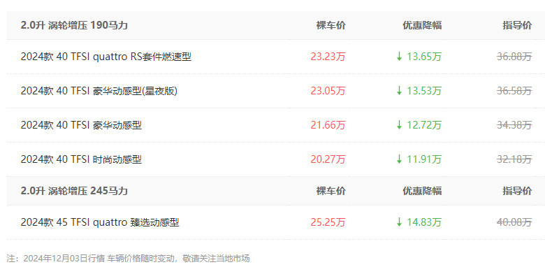 近日,車叔從北京某經銷商處了解到,2024款奧迪A4L最高可優惠14.83萬元,其中2024款 45 TFSI quattro臻選動感型的優惠后裸車價僅為25.25萬元。