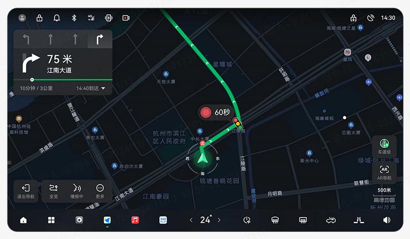 出門后,我們就需要開啟地圖來進行導航了,這一次零跑C11的車機版地圖得到了升級,新增導航區間測速提醒,在經過限行區域時也會同步提醒限行,包括很多用戶心心念念的紅綠燈倒計時提醒也來了,有了這些行車的提醒,我們就能及時調整我們的駕駛行為,提升我們的出行效率和出行安全。