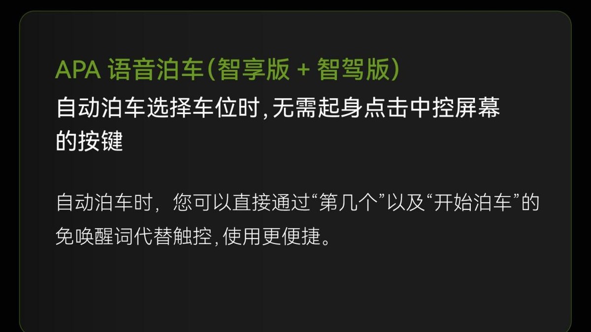 一天的旅途結束了,我們該回家里的車位停車了,這一次OTA后零跑C11新增了APA語音泊車,打開智駕語音提示開關就可開啟該功能,自動泊車時我們就可以通過“第幾個”以及“開始泊車”的免喚醒詞代替觸控,無需動手,只需動動嘴的功夫就可以把車停好,至此,一段便捷又有趣的郊游出行就完成了。