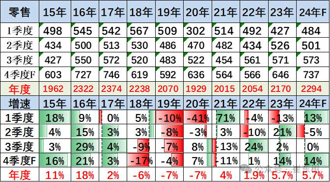 但是隨著7月份政策的全面實施落地,力度進一步加大,刺激作用終于開始顯現。三季度車市重回零增長水平,四季度開始出現爆發。最終整個2024年乘用車零售量預計將達到2294萬輛,同比增長5.7%。如果單看四季度,同比增速達到14%,與一季度相當。整個乘用車市場全年走出了一個“U”型的走勢。