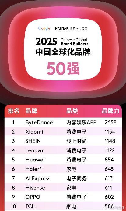凱度攜手Google正式發(fā)布《2025凱度BrandZ中國全球化品牌》50強(qiáng)榜單。