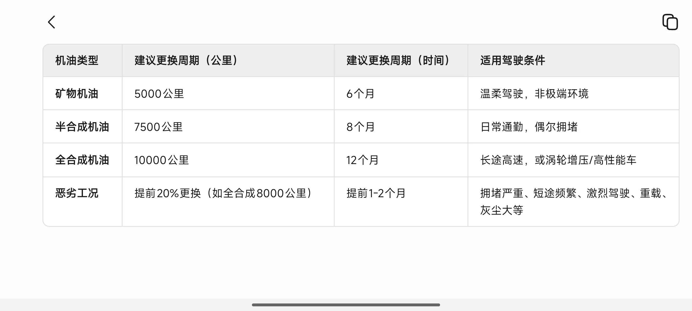 普通礦物油確實脆弱,半年或5000公里已是極限。但全合成機油憑借頂尖的抗氧化技術,完全能扛住1年或10000公里的考驗。如果你用的半合成油,取個折中——7500公里或8個月更換更合理。