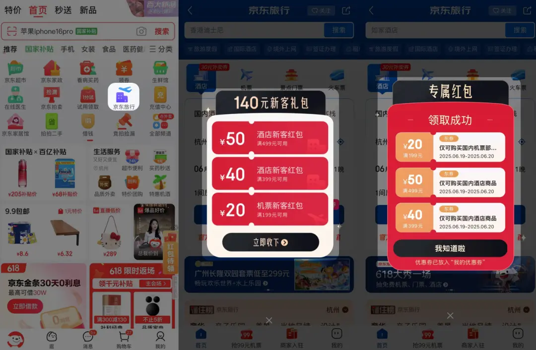 現(xiàn)在在京東 APP 里,已經(jīng)能找到酒旅業(yè)務(wù),即京東旅行。