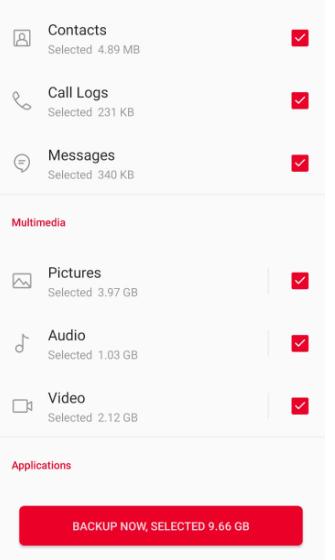 - 選擇你想要從一加設備備份到 Google Drive 的照片、視頻等。