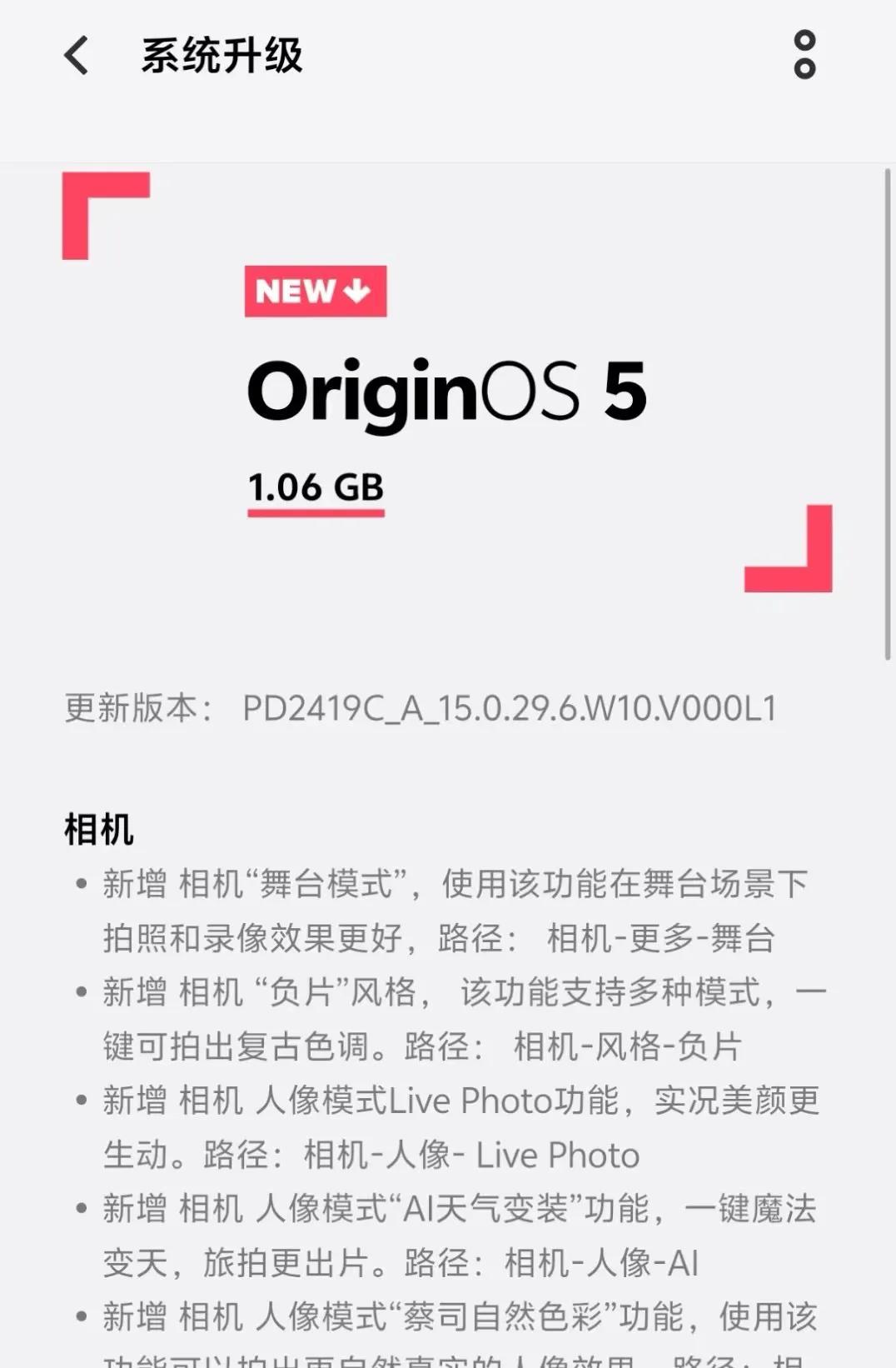 最近好多vivo手機都收到了系統更新,尤其是X200系列。新版系統叫OriginOS5,版本號根據不同機型有15.0.22.2和15.0.29.6兩種,都是差不多的內容。下載包大概1GB大小,更新之后多了幾個相機功能,比如能拍負片效果,還有人像模式可以變天氣,像是把晴天改成下雨天那種。喜歡拍照的人應該會喜歡這些新玩意兒,反正我試了一下確實挺有意思的。