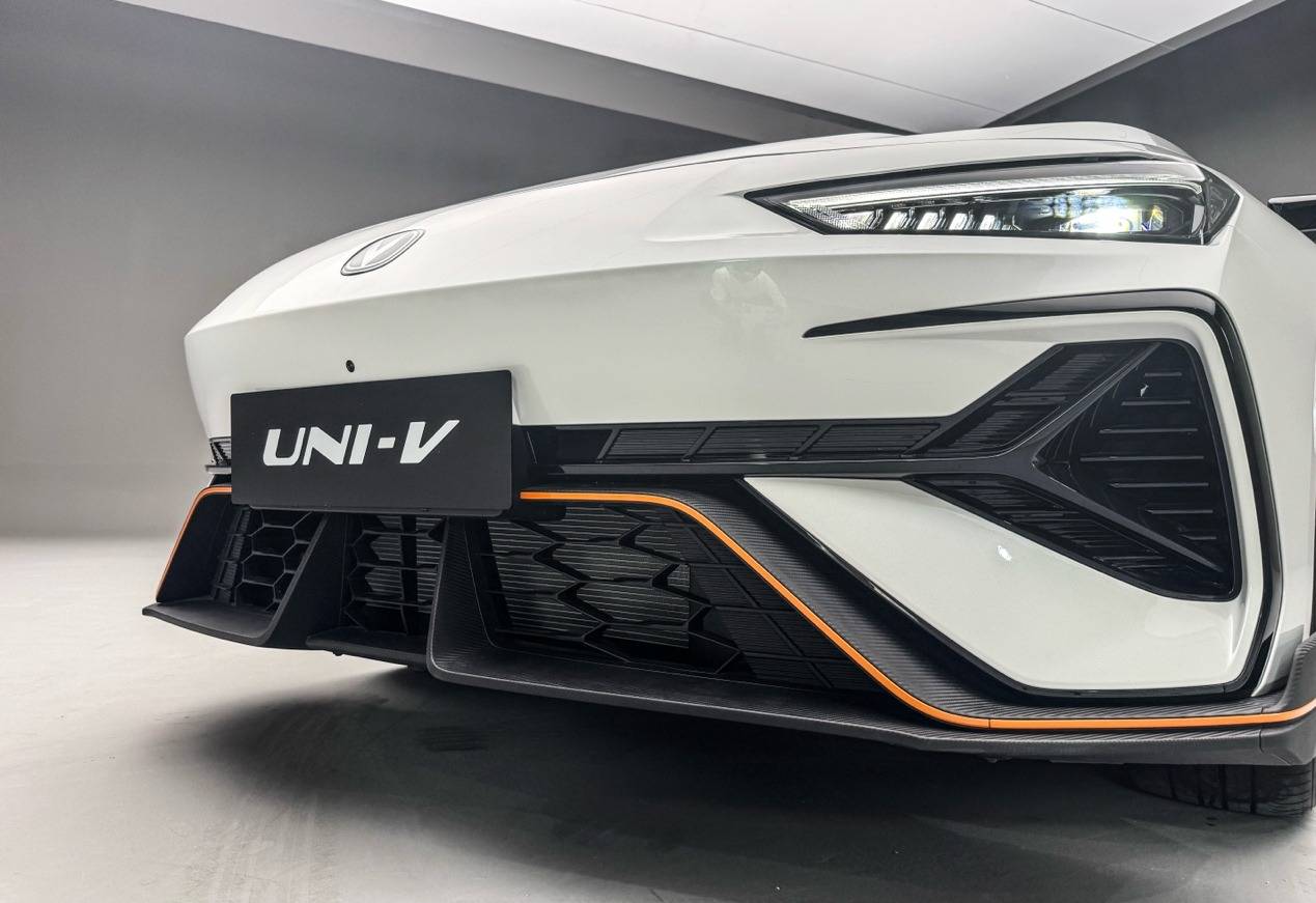 如果把一輛車比作一個人的話,第三代UNI-V絕對是一位有態度的時尚達人。新車采用了全新設計語言,車身線條更具雕塑感,前臉的進氣格柵經過重新塑造,鋒利的切割面如同銳利的劍刃,透出一股蓄勢待發的力量感。猶如一位剛剛走上舞臺的主角,充滿自信且不容忽視。