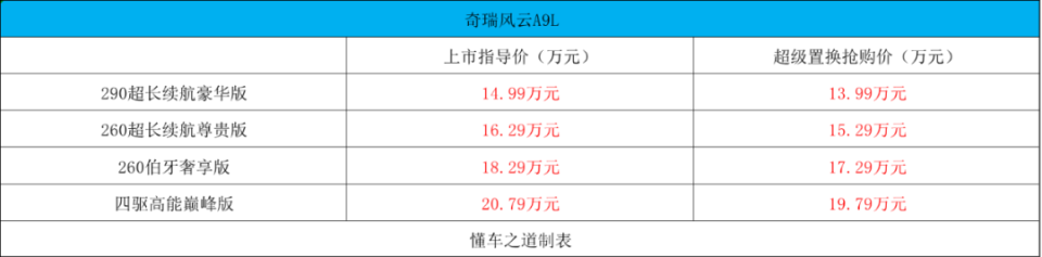 7月8日,我們從奇瑞汽車官方了解到,旗下中大型轎車——風(fēng)云A9L正式上市,新車共推出4款配置,售價(jià)區(qū)間為14.99-20.79萬(wàn)元,超級(jí)置換搶購(gòu)價(jià)為13.99-19.79萬(wàn)元。