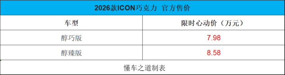 新車上市一:吉利2026款I(lǐng)CON巧克力車型