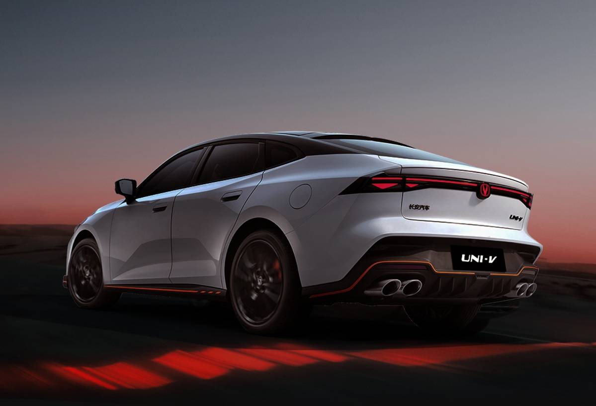 外觀方面,新車定位運動轎跑,采用“未來先鋒運動美學”設計語言打造,低趴的身型搭配大溜背的尾部,配備19英寸暗夜五輻輪轂、四活塞運動卡鉗和電動尾翼,帶來強烈的運動氣息。尺寸方面,長安UNI-V的車身長度為4740mm,軸距為2750mm,在緊湊型轎車里面居于前列。