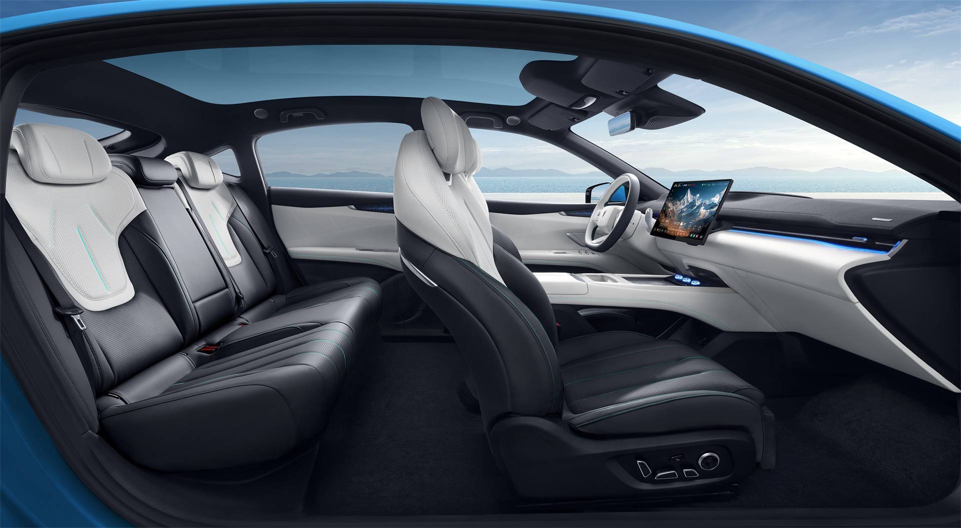 在顏值即正義的時代,深藍L07的設(shè)計堪稱"行走的荷爾蒙"。0.215Cd的風(fēng)阻系數(shù)比高鐵還低,配合電動升降尾翼和19英寸颶風(fēng)輪轂,跑起來像一道流動的光。無框車門和隱藏式門把手一解鎖就自動彈出,每次停車都能收獲路人的"回頭禮"。