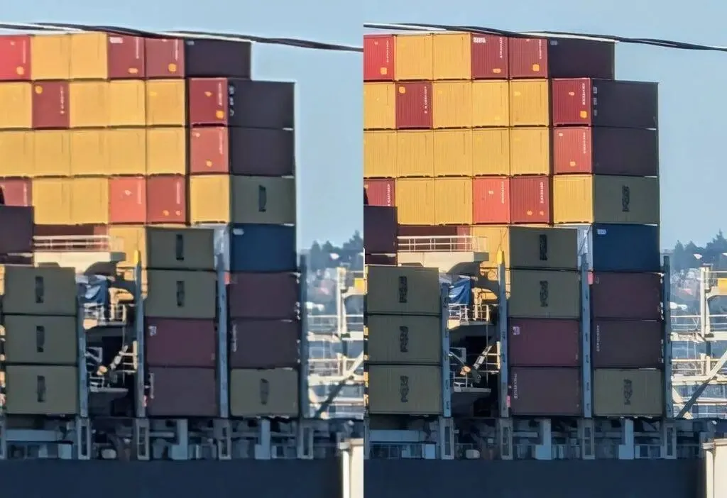 放大 100 倍拍攝,左:未開啟 Pro Res Zoom;右:開啟 Pro Res Zoom