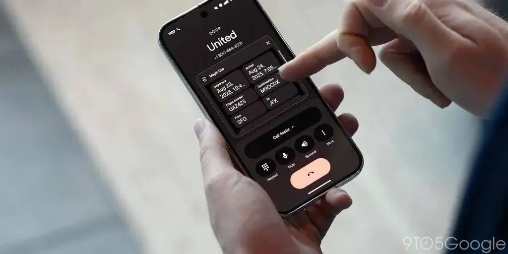 通話時也能提供航班信息的 Magic Cue,圖源:9to5Google