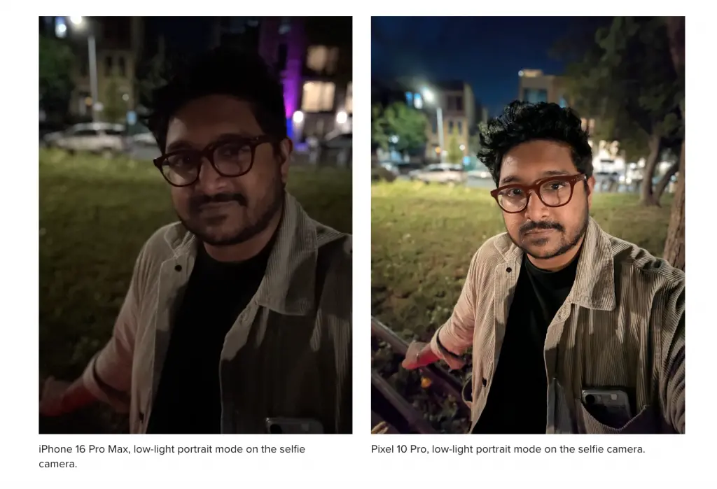 成片方面,Pixel 10 的人物膚色比較均衡,并且對頭發進行了單獨優化,The Verge 形容「保留了每一縷頭發」,弱光環境中 Pixel 10 Pro 表現遠遠優于 iPhone 16 Pro。