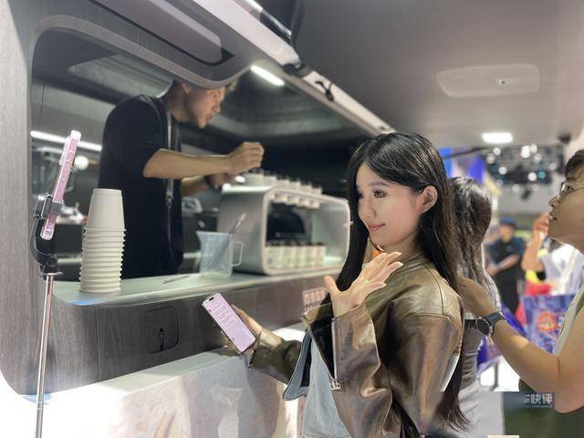 這次是成都車展上,長安凱程聯名元氣森林打造了“元氣能量站”。利用長安凱程V919的6.6千瓦大功率對外放電功能,直接在現場制作元氣森林聯名款冰飲以及現制咖啡,在成都車展上變身為移動的咖啡館。